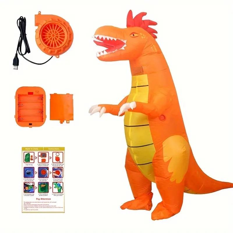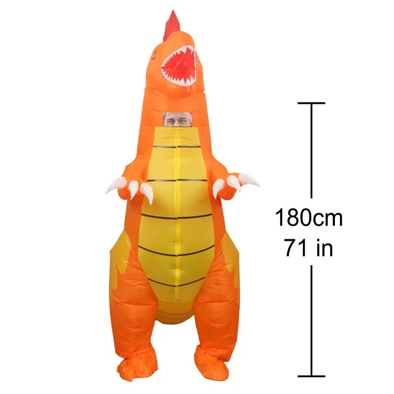 ชุดมาสคอตไดโนเสาร์เต็มตัวสีส้ม ชุดแฟนซีไดโนเสาร์ ชุดคอสเพลย์ไดโนเสาร์ แบบเป่าลม สำหรับผู้ใหญ่ 150-190 ซม. By Trexthai