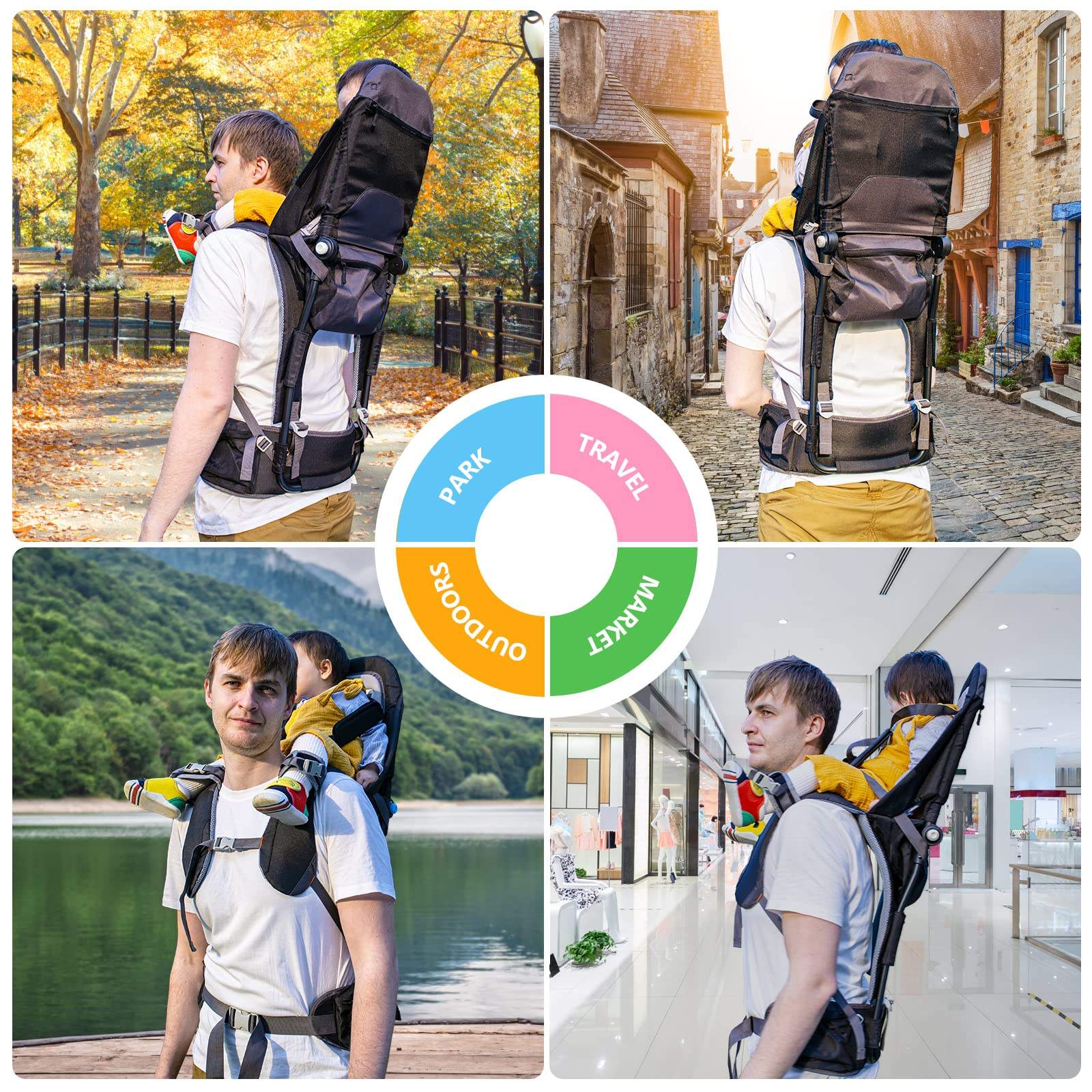 สายสะพายไหล่แบบยืดหยุ่นของเป้อุ้มเด็กสะพายหลังสำหรับเดินป่าช่วยให้ผู้ปกครองสามารถอุ้มลูกน้อยได้เป็นเวลานาน และเข็มขัดคาดเอวแบบบุนวมกว้างและปรับได้ช่วยลดน้ำหนักบนไหล่ของคุณ หัวเข็มขัดนิรภัยสองด้านและสายรัดข้อเท้าคู่ที่เคลื่อนขึ้นและลงเพื่อให้การป้องกันการพกพาที่ดียิ่งขึ้น