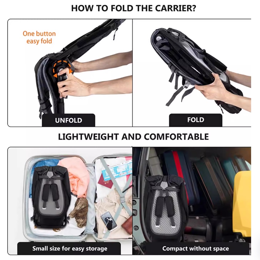 เป้อุ้มเด็กรุ่นนี้มีน้ำหนักเพียง 1.8 กิโลกรัม (3.9 ปอนด์) เป้อุ้มเด็กแบบสะพายไหล่ขี่คอสามารถพับเก็บได้อย่างรวดเร็วเพื่อการจัดเก็บที่ง่ายและพกพาสะดวก เหมาะสำหรับเด็กอายุ 6 เดือน - 3 ปี รับน้ำหนักได้สูงสุด : 40 ปอนด์ (ประมาณ 18 กิโลกรัม)