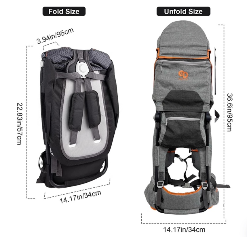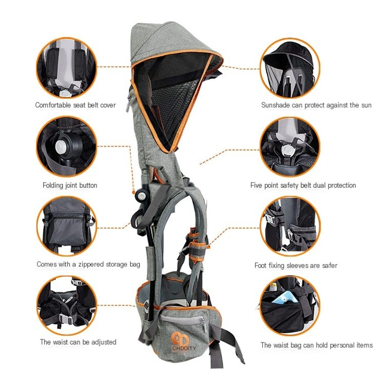 เป้อุ้มเด็กเล็กของเราทำจากโครงโลหะที่แข็งแรงแต่น้ำหนักเบา ตัดเย็บจากผ้าอ็อกซ์ฟอร์ด 600D ที่ระบายอากาศได้ดี พร้อมช่องเก็บของเล็กๆ ที่ขอบเอวทั้งสองด้าน และช่องเก็บของขนาดใหญ่ที่ด้านหลัง สายสะพายไหล่และเอวระบายอากาศได้ดี ช่วยให้คุณรู้สึกเย็นสบายและปลอดภัย